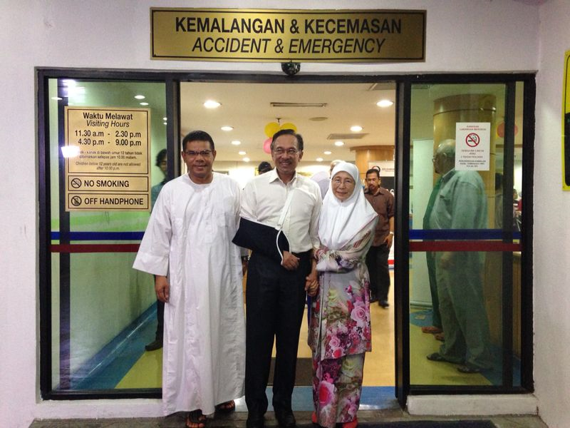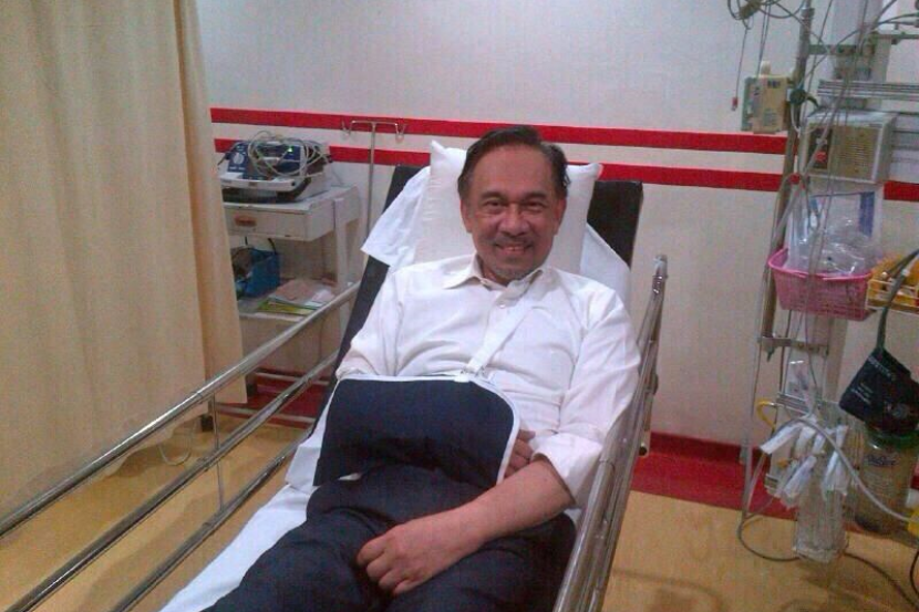 Anwar yang mengalami kecederaan di bahagian tangan kemudiannya dibawa untuk menerima rawatan di Hospital Pakar Damansara.
