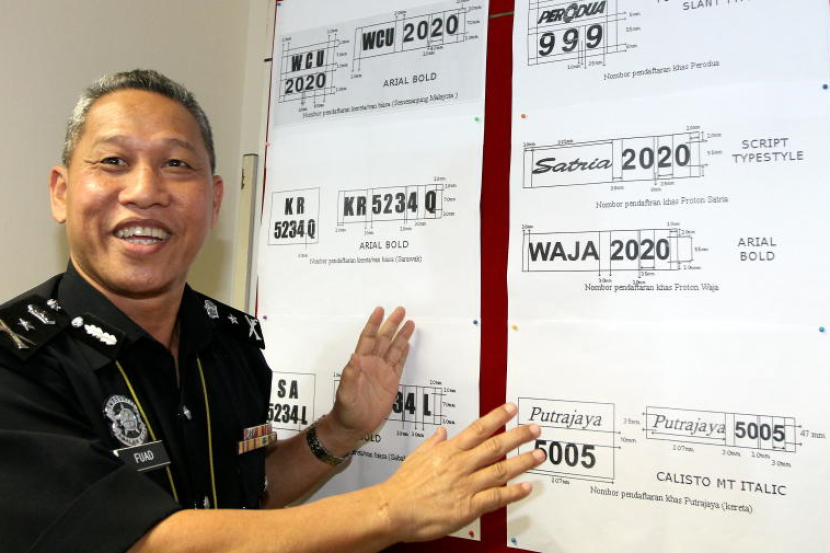 "Nombor pendaftran hendaklah sentiasa dipamerkan di hadapan dan bahagian belakang kenderaan tersebut dalam kedudukan menegak pada plat segiempat atau permukaan segiempat yang tidak pecah dan selepas tarikh itu, kompaun kesalahan akan dikenakan sebanyak RM300.