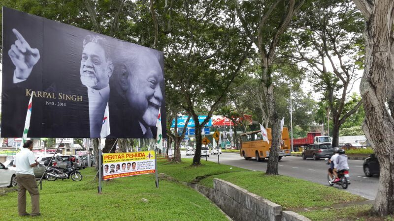 Suasana sepanjang jalan menuju ke Air Itam dan Gelugor hanya digantung bendera DAP dan bunting gambar calonnya, Ramkarpal Singh Deo yang tertera perkataan 'I am Karpal Singh'.