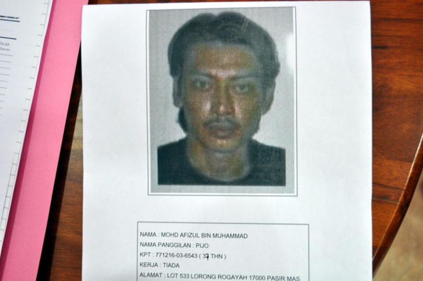 Pihak polis meminta Mohd Afizul Muhammad, 32, yang beralamat terakhir di Lot533, Lorong Rogayah, Pasir Mas, Kelantan agar tampil atau menghubungi Ibu Pejabat Polis Daerah Besut.