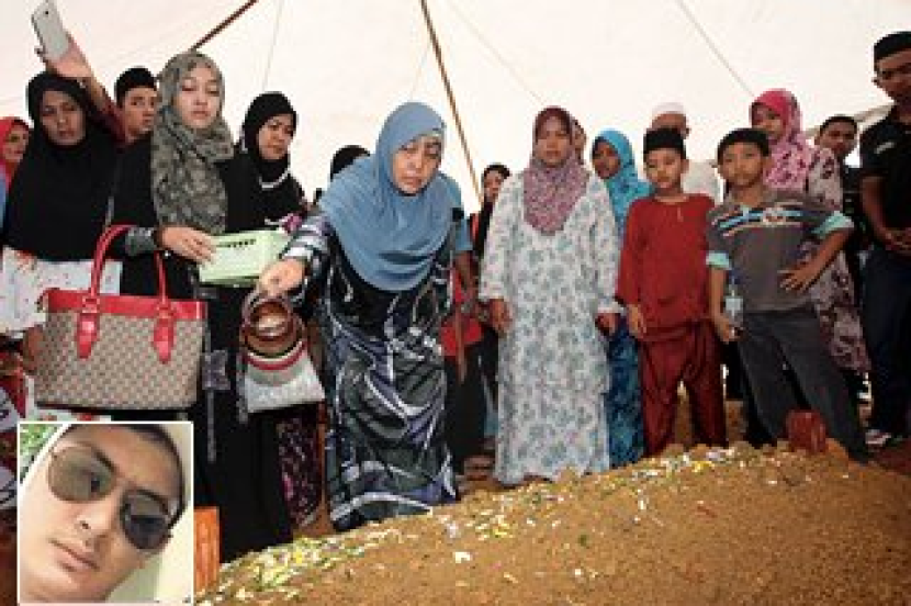 Suasana mendung dan gerimis mengiringi pengebumian jenazah yang sebelum itu disembahyangkan di Masjid Kampung Rahmat.