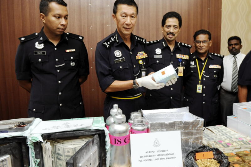 Polis turut merampas logam berwarna keemasan dengan tulisan 99.99 dalam bentuk bar emas, ketulan logam kecil bewarna keemasan, dan kotak bewarna perak mengandungi 18 ikat wang USD100 yang dipercayai palsu.