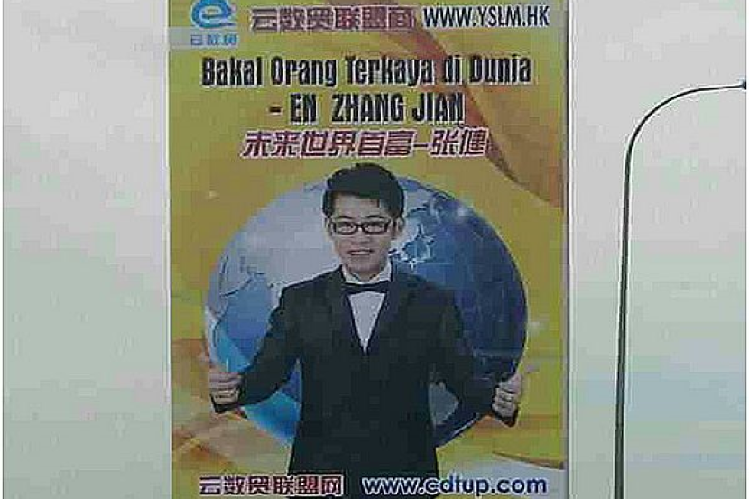 "Pada papan iklan gergasi itu hanya terdapat gambar seorang lelaki muda yang bernama Zhang Jian selain tertulis "Bakal orang terkaya di dunia.