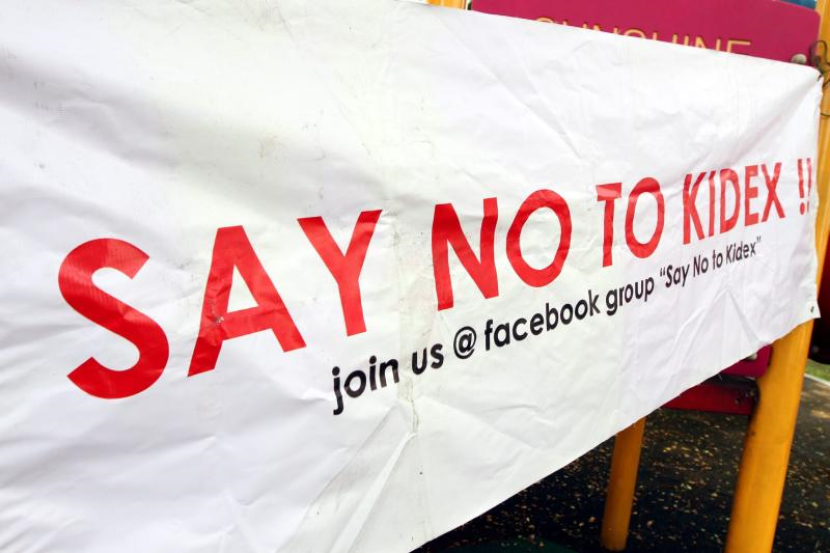 Bunting yang digantung di luar Rukun Tetangga kawasan yang terbabit dalam pembinaan Kidex.