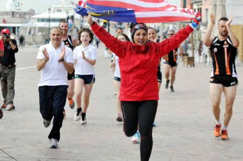 Suwaibah, yang memulakan larian itu di Beijing pada 30 Mac lepas, berlari merentasi empat benua dan 12 negara, termasuk China, Kyrgyzstan, Kazakhstan, Uzbekistan, Turkmenistan, Iran, Turki, Bulgaria, Serbia, Croatia, Slovenia dan Itali sejauh 3,333 kilometer.