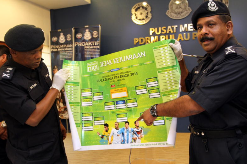 GEORGE TOWN: Polis Pulau Pinang menahan 12 'bookie' perlawanan bola sepak Piala Dunia 2014 dalam serbuan berasingan di seluruh negeri ini dari 13 Jun hingga Rabu. Timbalan Ketua Polis Pulau Pinang Datuk A. Thaiveegan berkata mereka termasuk seorang wanita, yang berusia antara 28 dan 60 tahun, didapati menganjurkan kegiatan perjudian menerusi pelbagai saluran melibatkan wang pertaruhan dari RM100 hingga RM2,000. "Ada kaki judi yang membuat pertaruhan secara dalam talian, menerusi telefon bimbit atau berurusan terus dengan bookie terbabit," katanya pada sidang akhbar di sini, Khamis. Beliau berkata sebanyak 11 serbuan dibuat di kafe, kedai kopi dan rumah di Bukit Tengah Bukit Mertajam, Butterworth, Batu Maung dan Sungai Nibong. Dalam serbuan itu, polis merampas wang tunai berjumlah RM8,971, jadual perlawanan bola sepak, sebuah komputer riba, dua iPad, 19 resit pertaruhan dan 10 telefon bimbit. Thaiveegan berkata kesemua yang ditahan tidak mempunyai rekod jenayah dan sembilan daripadanya dibebaskan dengan jaminan polis manakala tiga lagi dalam proses reman. Polis menubuhkan tujuh pasukan khas yang diselia Ketua Jabatan Siasatan Jenayah negeri SAC Mazlan Kesah di bawah 'Ops Soga' yang dilancarkan bermula 26 Mei lepas hingga 13 Julai ini. Beliau berkata pemantauan berterusan akan dilakukan tanpa mengira waktu dan lokasi berikutan perlawanan berprestij itu menjadi tumpuan ramai peminat bola sepak terutamanya kaki judi. Beliau turut meminta kerjasama orang ramai untuk menyalurkan sebarang kegiatan berunsur pertaruhan di kawasan mereka dengan menghubungi balai polis berhampiran.