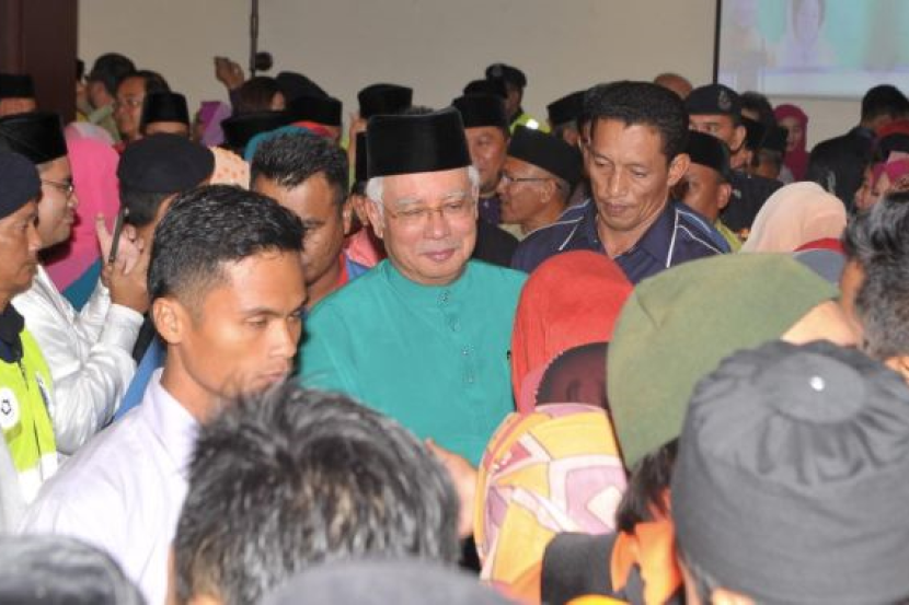 Najib dan Rosmah turut menyampaikan sumbangan duit raya dari Pusat Zakat Sabah kepada anak-anak yatim, ibu tunggal dan warga emas di sekitar Kota Kinabalu.