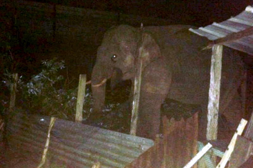 Jumaat lepas gajah berkenaan memusnahkan pokok kelapa sawit dan pisang yang ditanam berhampiran kampung dan merosakkan bangsal berhampiran sebuah rumah penduduk.