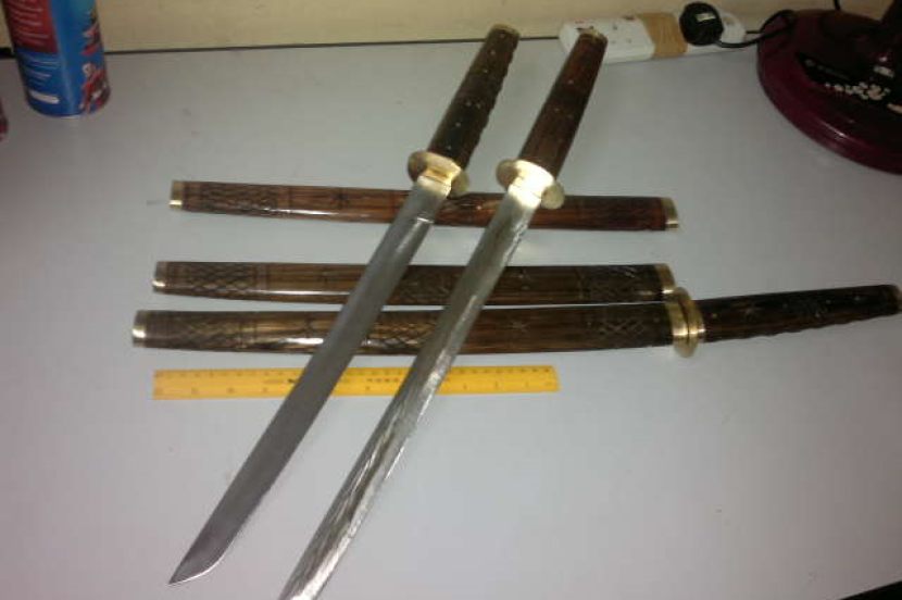 "Selain dua bilah samurai, polis turut dirampas dua batang besi dan kereta Perodua Kelisa itu," katanya Isnin.