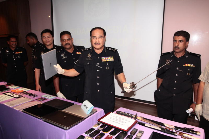 Zainuddin (dua kanan) menunjukkan barang-barang rampasan dalam pelbagai kes.