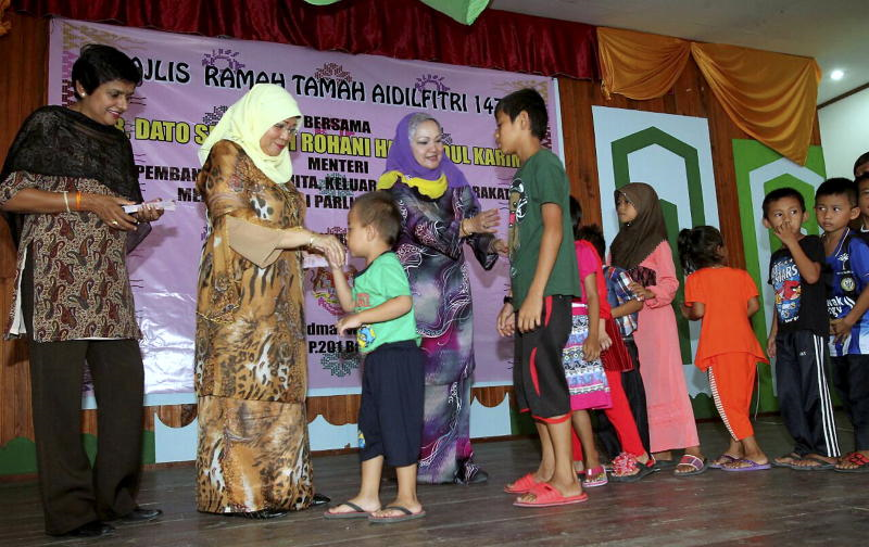 Rohani turut menyampaikan duit raya kepada kanak-kanak daripada golongan miskin dan kurang kemampuan.