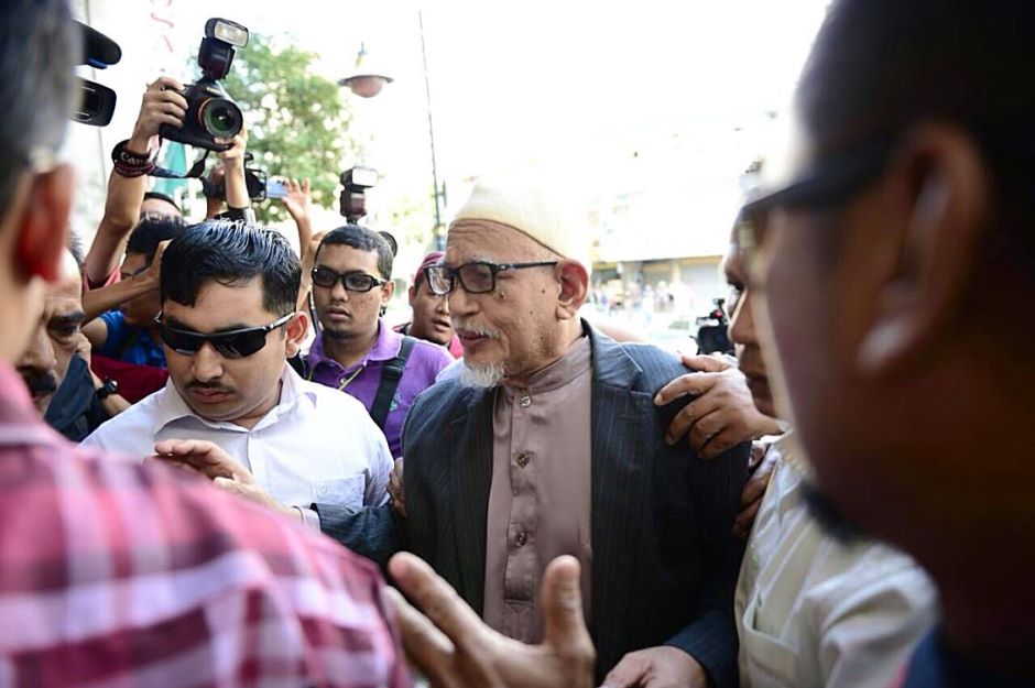 Kira-kira pukul 9.45 pagi Ahad, Hadi yang tiba di pekarangan Pejabat Agung PAS disambut dengan laungan takbir sebagai tanda sokongan.