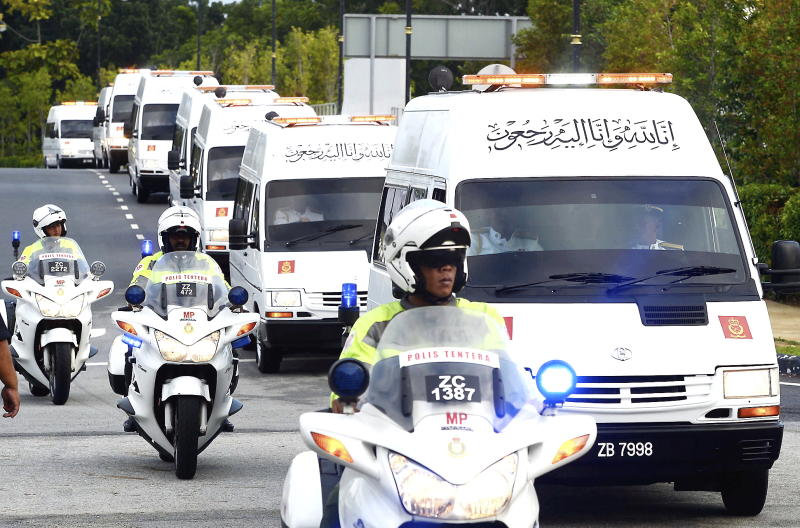 Deretan konvoi kereta jenazah memasuki Kompleks Bunga Raya, Lapangan Terbang Antarabangsa Kuala Lumpur (KLIA) bagi melakukan raptai persediaan menerima jenazah mangsa nahas pesawat Malaysia Airlines (MAS) MH17 yang dijangka tiba dari Amsterdam pagi Jumaat di Sepang.