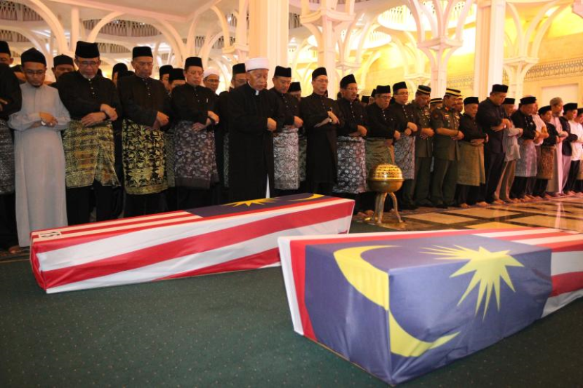 Joji kemudian memimpin solat jenazah dan suasana menjadi hening seketika ketika beliau membaca doa buat kedua-dua arwah dalam bahasa Malaysia.