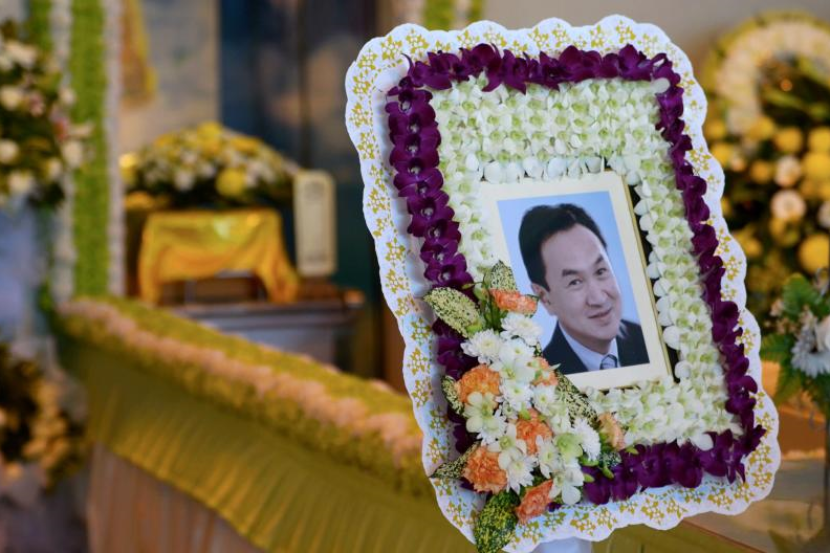 Gambar mangsa tragedi MH17, mendiang Foo Ming Lee diletakkan bersebelahan kerandanya sebelum upacara pembakaran di Nirvana Memorial Park Shah Alam, di sini. Ahad.