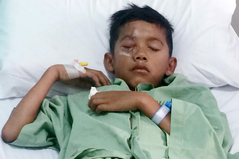 Beliau berkata pakar perubatan memaklumkan mata hitam anaknya pecah dan mempunyai peluang yang tipis untuk kembali melihat.