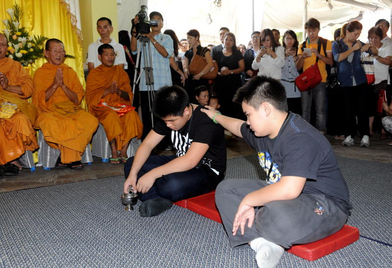 Scott (kanan) mententeramkan abangnya ketika menjalankan upacara keagamaan pada Selasa.