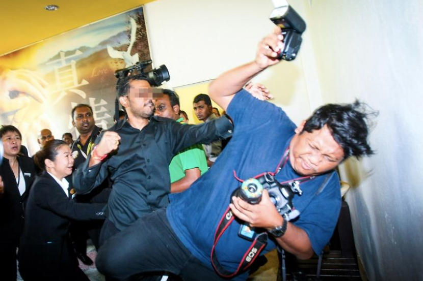 PETALING JAYA: "Saya ditumbuk tanpa sebab," demikian reaksi jurugambar kumpulan The New Straits Times Press (M) Bhd (NSTP), Mohd Aizuddin Akmal Saad yang menjadi mangsa perlakuan ganas ahli keluarga penumpang pesawat MH17. Menceritakan kembali insiden kekecohan di Pusat Peringatan Nirvana, Sungai Besi itu, Aizuddin mengakui tidak mengetahui punca sebenar mengapa dia diserang secara tiba-tiba oleh individu berkenaan. "Saya tak ganggu keluarga mangsa (MH17), tiba-tiba saja satu tumbukan hinggap di muka saya...tumbuk curi," kata Aizuddin ketika dihubungi mStar Online pada Selasa. Aizuddin, 29, cedera di muka selepas ditumbuk oleh salah seorang ahli keluarga mendiang pasangan Paul Goes, warga Belanda dan isterinya, Subashni Jretnam, serta anak mereka, Kaelamayajay Goes ketika membuat liputan upacara menyambut kepulangan jenazah mangsa MH17. Salah seorang ahli keluarga mangsa MH17 bertindak menumbuk jurugambar kumpulan NSTP. Menurut Aizuddin, ketika kejadian, dia dan kumpulan jurugambar daripada agensi media lain berada jauh daripada keluarga mangsa setelah dihalang daripada membuat liputan. "Ketika itu petugas media mula menumpukan perhatian kepada saya kerana telah dikasari oleh seorang lagi ahli keluarga mangsa sehingga lensa kamera dan flash saya patah. "Sebab itulah saya hairan mengapa saya diserang lagi sedangkan saya sudah tidak merakamkan apa-apa gambar ketika itu," katanya. Terdahulu, ketika urusan mengeluarkan jenazah daripada van jenazah, seorang individu secara tiba-tiba bertindak ganas terhadap seorang jurugambar Utusan Malaysia, Rushdi Salleh. Aizuddin yang ketika itu berada di lokasi kajadian merakamkan insiden kekecohan tersebut hingga menimbulkan kemarahan lelaki berkenaan apabila menyedari tindakannya dirakamkan. "Semasa di luar lagi saya sudah dikasari sehingga kamera rosak. Tapi ketika itu kekasaran tidak membabitkan sentuhan fizikal. "Yang peliknya bila saya dibawa masuk ke ruang dalam, sekali lagi saya diserang tanpa sebab," katanya. Menurut Aizuddin, dia membuat laporan polis berhubung insiden itu di Balai Polis Sungai Besi.