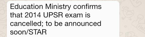 Sejak petang tadi, berita palsu berhubung pembatalan UPSR 2014 mula tersebar termasuk menggunakan nama The Star.