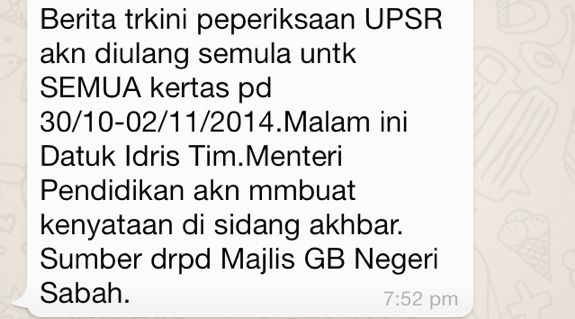 Malah turut disebar maklumat kononnya Menteri Pendidikan Kedua, Datuk Seri Idris Jusoh akan membuat pengumuman rasmi berhubung keputusan itu pada malam ini.