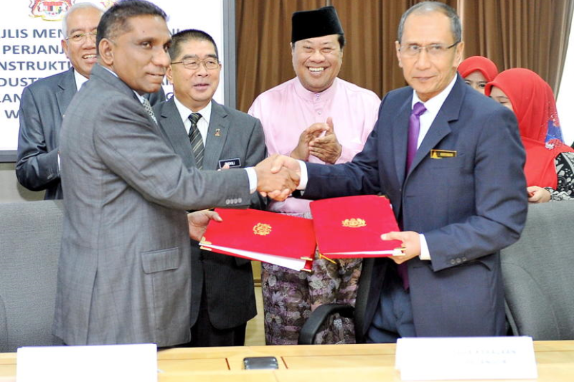 Menteri Tenaga, Teknologi Hijau dan Air, Datuk Seri Dr Maximus Ongkili dan Abdul Khalid menyaksikan pertukaran perjanjian antara Ketua Setiausaha Perbendaharaan, Tan Sri Mohd Irwan Siregar Abdullah dengan Setiausaha Kerajaan Negeri Selangor, Datuk Muhammad Khusrin Munawi (kanan) dan Ketua Pegawai Eksekutif Pengurusan Aset Air Berhad (PAAB), Datuk Ahmad Faisal Abdul Rahman serta Ketua Pegawai Eksekutif Pengurusan Air Selangor Sdn Bhd, Suhaimi Kamaralzaman pada majlis menandatangani Perjanjian Utama pada Jumaat.