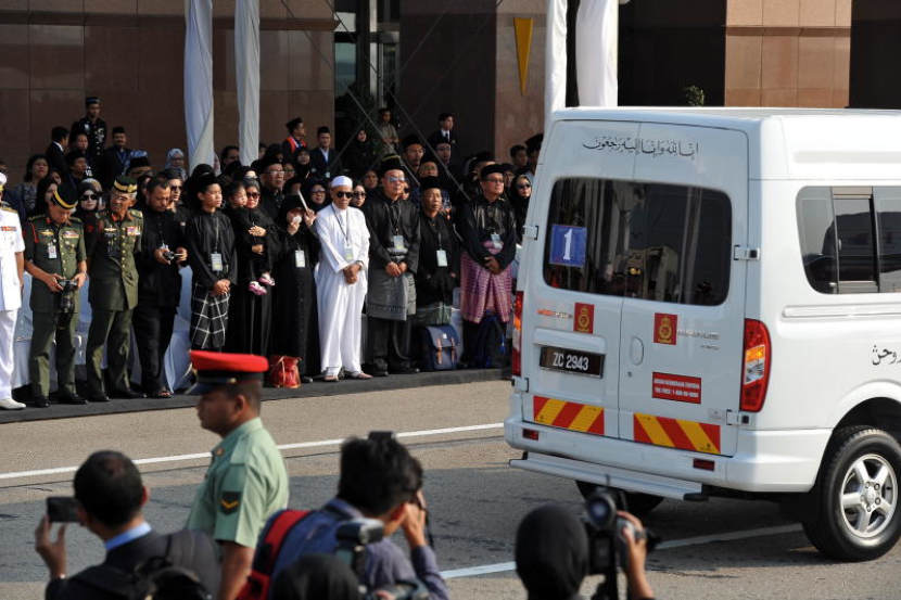 Selesai upacara penghormatan, keranda dimasukkan ke dalam van jenazah untuk dibawa ke Masjid Jamek, Petra Jaya di sini untuk solat jenazah.