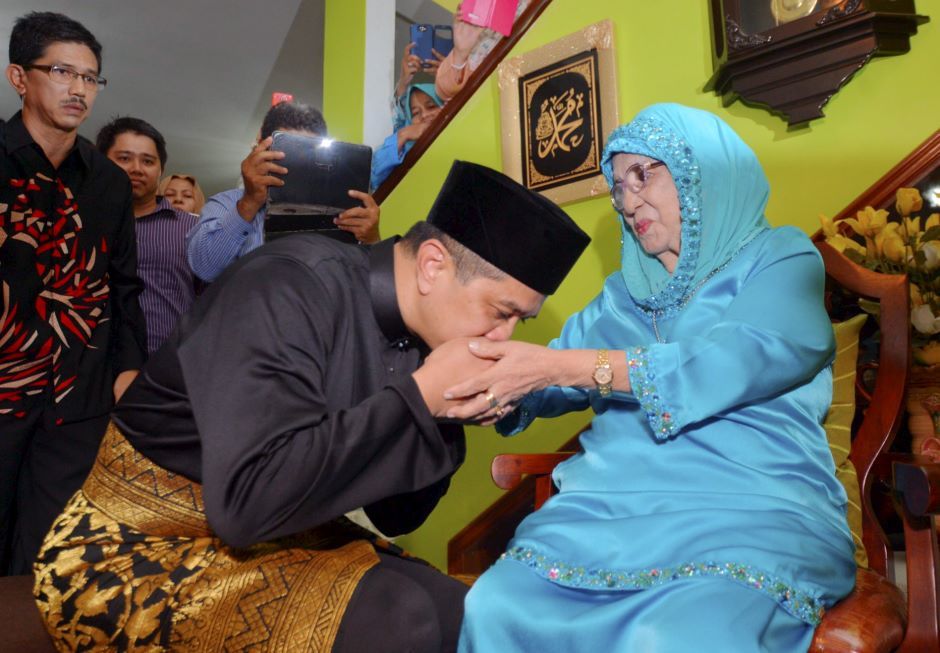 KUALA LUMPUR: Selepas mengangkat sumpah sebagai menteri besar, Azmin Ali berhenti untuk menunaikan solat di masjid sebelum menemuinya bondanya, Che Tom Yahya, 80, untuk mendapatkan restu wanita yang melahirkannya.