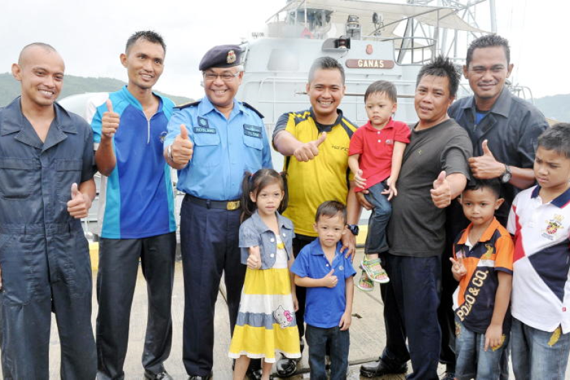 Ketibaan Azri dan empat anggotanya disambut Panglima Wilayah Laut 2, Laksamana Muda Datuk Mohammad Rosland Omar dan anggota serta pegawai TLDM lain.