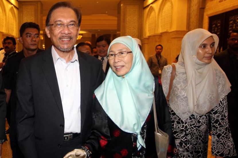 Turut mengiringi Anwar adalah isterinya, Datuk Seri Dr Wan Azizah dan anak perempuannya yang juga Ahli Parlimen Lembah Pantai, Nurul Izzah Anwar.
