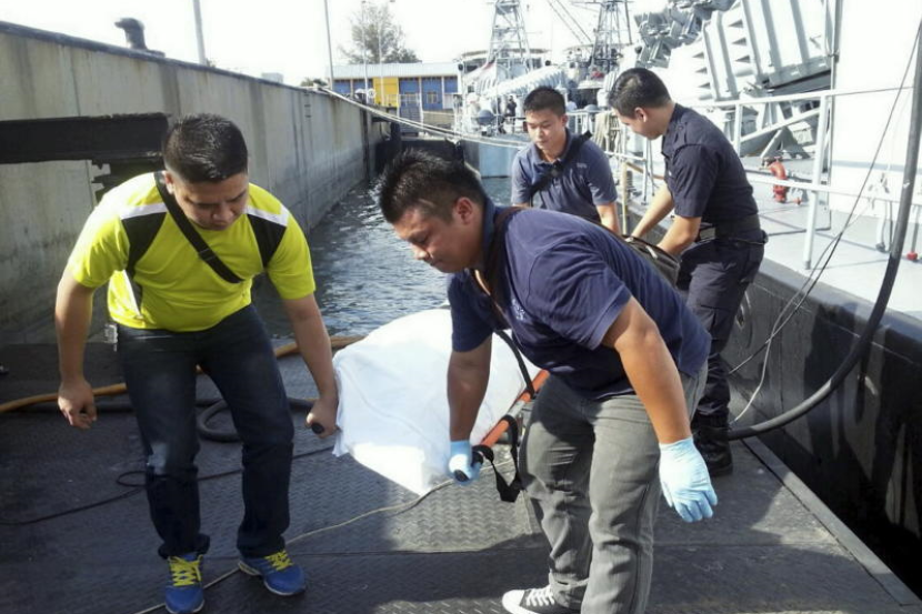 Gambar fail menunjukkan anggota Polis mengangkat salah satu mayat daripada enam anak kapal sebuah bot tunda yang dijumpai untuk dibawa ke Hospital Tengku Ampuan Afzan (HTAA) pada Sabtu. Pada Ahad pihak berkuasa menemui dua lagi mayat yang dipercayai anak kapal bot berkenaan.