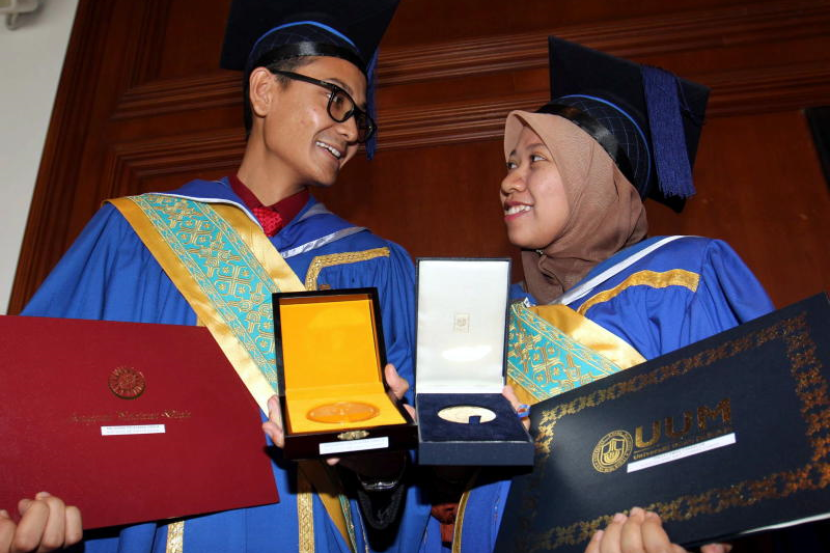 Nur Sauri Yahya, 25, dari Jalan Stadium, Alor Setar dan Hanis Salwani Othman, 25, dari Kampung Perpat, Kota Sarang Semut membuktikan kesungguhan mereka apabila masing-masing memperoleh Anugerah Pelajaran Diraja dan Pingat Emas Canselor dalam bidang Multimedia pada Konvokesyen Universiti Utara Malaysia (UUM) kali ke-27 di sini, Sabtu.