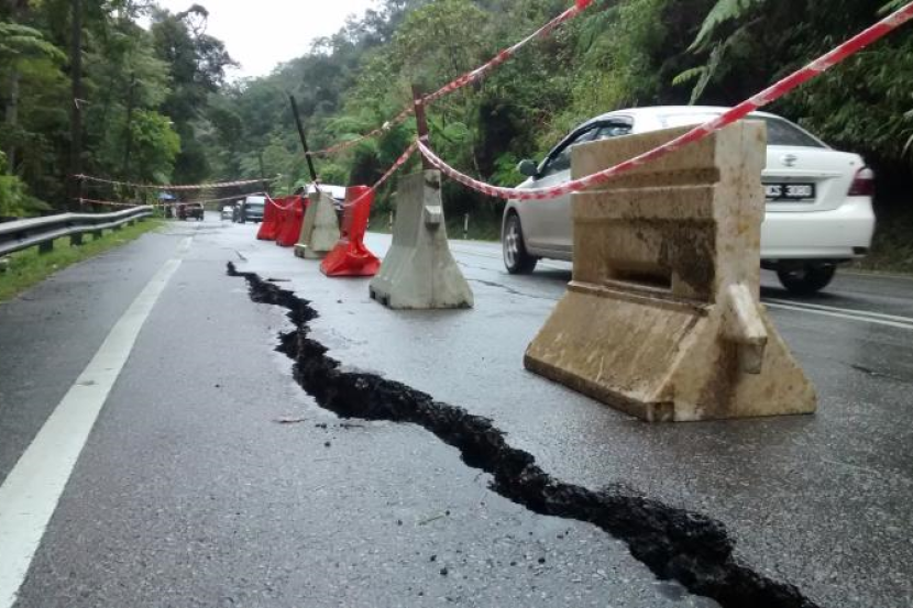 Malahan, ada juga laluan yang didapati retak beberapa meter hingga memaksa pihak berkuasa menutup satu laluan bagi menjamin keselamatan pengguna jalan raya.