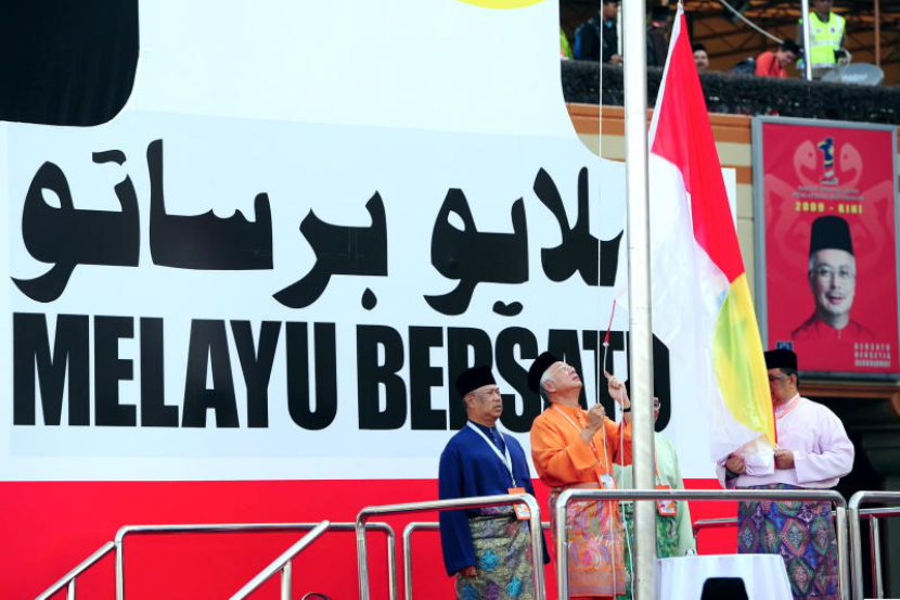 Terdahulu, majlis perasmian bermula dengan upacara menaikkan Jalur Gemilang dan bendera Umno 'Sang Saka Bangsa', nyanyian lagu Negaraku dan lagu parti 'Bersatu, Bersedia, Berkhidmat' di Plaza Merdeka, sebelum beralih ke Dewan Merdeka.