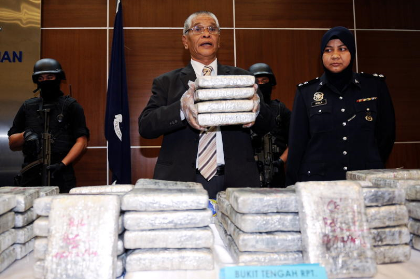 Datuk Seri Noor Rashid Ibrahim menunjukan ketulan ganja mampat yang dirampas oleh polis pada sidang media mengenai kejayaan mematahkan empat percubaan penyeludupan dan pengedaran dadah pada 4 hingga 7 Disember lalu di sekitar Selangor dan Pulau Pinang di Bukit Aman, Isnin. -fotoBERNAMA