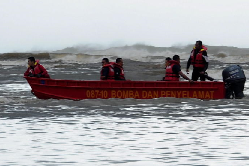 Anggota Bomba dan Penyelamat menggunakan bot dalam operasi mencari remaja Muhamad Amiro Farhan Alias, 16, yang dipercayai lemas sewaktu mandi di Taman Rekreasi Kuala Ibai pada Ahad. Foto: BERNAMA
