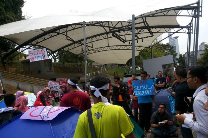 Pelajar-pelajar tersebut, yang merupakan sebahagian daripada gerakan Occupy UM, telah berkhemah di luar pintu masuk UM sejak Rabu bagi memprotes apa yang mereka katakan sebagai satu serangan terhadap kebebasan akademik.