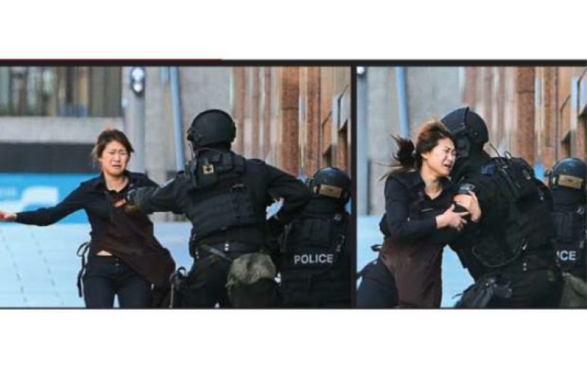 Selepas bunyi tembakan dan letupan yang kuat, polis menyerbu masuk ke dalam kafe Lindt Chocolat di Martin Place tidak lama selepas lima atau enam tebusan dilihat melarikan diri dari bangunan itu.