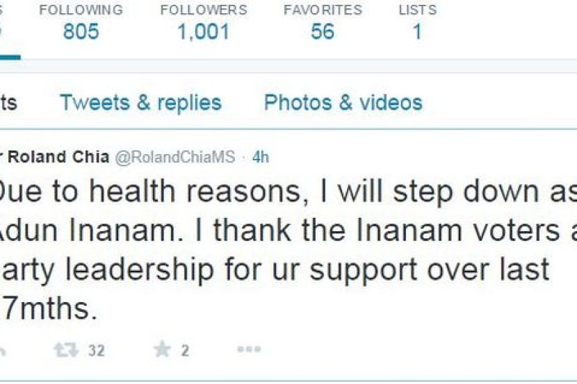 Beliau berkata demikian ketika diminta mengulas kenyataan Dr Chia daripada PKR di dalam laman Facebooknya yang menyatakan hasrat meletakkan jawatan atas faktor kesihatan.
