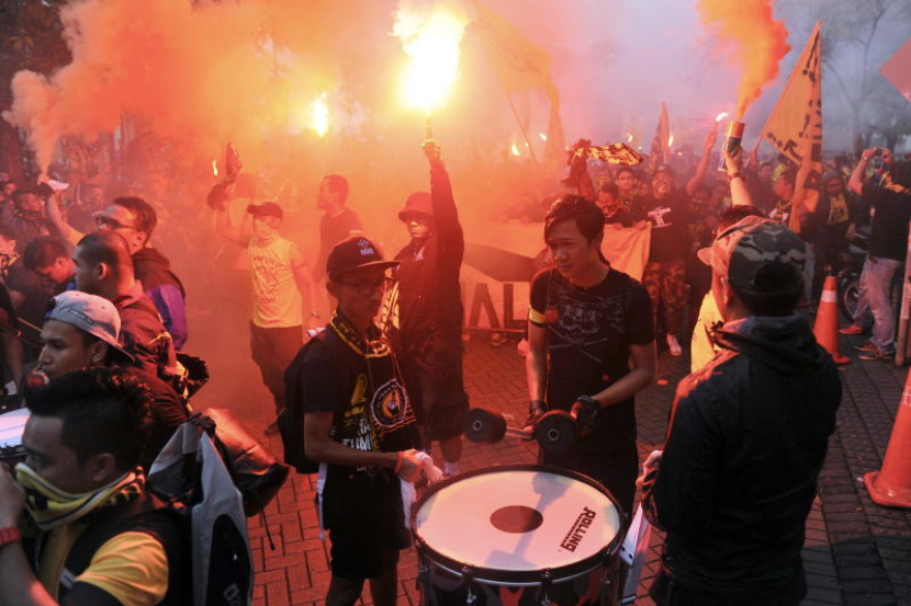 KUALA LUMPUR: Polis menahan dua lelaki warga tempatan kerana memiliki senjata berbahaya ketika menyaksikan perlawanan akhir Piala AFF Suzuki 2014, di Stadium Nasional Bukit Jalil, di sini, malam Sabtu.
