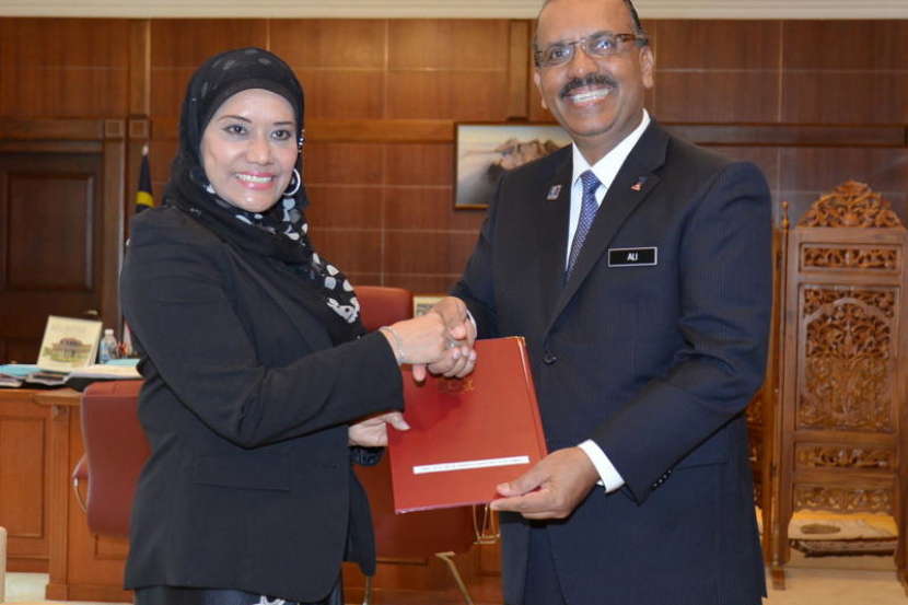 Ketua Setiausaha Negara Tan Sri Dr Ali Hamsa menyampaikan surat pelantikan kepada Ketua Setiausaha Kementerian Komunikasi dan Multimedia yang baharu, Datuk Seri Dr Sharifah Zarah Syed Ahmad, yang dilantik berkuatkuasa Isnin Datuk Seri Abd Rahim Mohd Radzi yang dilantik sebagai Ketua Setiausaha Kementerian Pertahanan. Foto: BERNAMA
