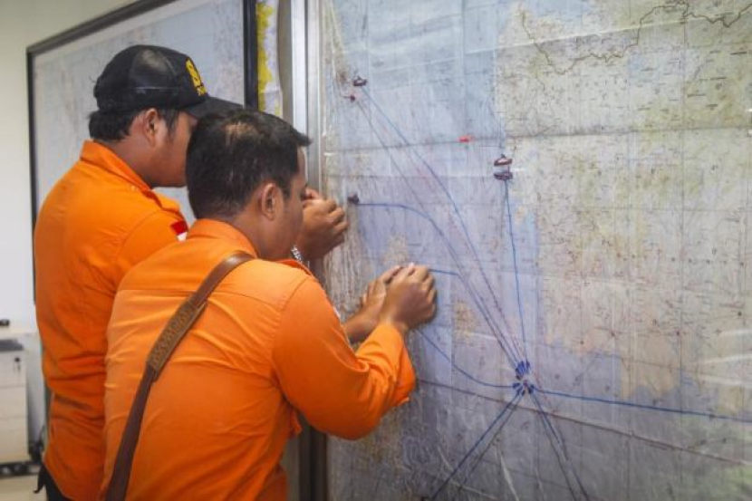 Pasukan mencari dan menyelamat meneliti lokasi terakhir pesawat QZ8501 sebelum terputus hubungan.