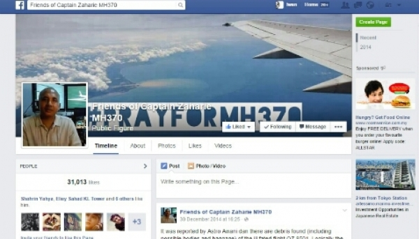 Akaun Facebook ‘Friends of Captain Zaharie MH370’ sebagai tanda sokongan dan penghormatan buat juruterbang itu.