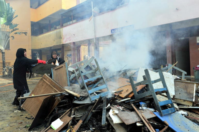 "Kita dah dimaklumkan oleh pihak sekolah tentang kerosakan yang dialami dan penggantian kerusi, meja, buku teks yang belum sempat diedarkan kepada pelajar sudah rosak, kita akan belanja lebih untuk ganti semula dengan segera.