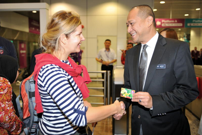 Mohamed Nazri Abdul Aziz menghadiahkan kad 'KL TravelPass' kepada pelancong asing yang baharu tiba, Dorota Poland selepas melancarkan kad berkenaan di Terminal KLIA pada Khamis. Kad Keluaran Express Rail Link Sdn boleh di tambah nilai untuk perjalanan menaiki ERL ke ibukota, menaiki bas Rapid KL dan memiliki ciri kad Touch N Go biasa.