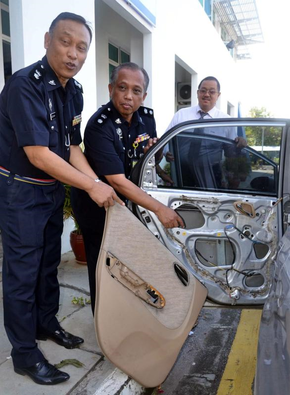 Katanya, ketika serbuan dilakukan dua suspek sedang memasukkan bungkusan daun ketum itu pada bahagian dinding pintu kereta jenis Honda City milik suspek warga Thailand bagi mengelak dikesan pihak berkuasa.