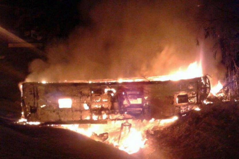 Pemandu bas tersebut dikatakan cuba mengelak sebuah tayar treler yang berada di tengah jalan sebelum terbabas ke dalam parit dan terbakar di Kilometer 326.3 Lebuhraya PLUS arah selatan berhampiran Plaza Tol Tapah kira-kira 1.15 pagi.