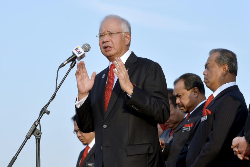 Najib ketika menyampaikan amanat kepada warga kerja Jabatan Perdana Menteri (JPM) pada Perhimpunan Bulanan JPM di Dataran Perdana di Bangunan Perdana Putra pada Isnin. Turut sama ialah Timbalan Perdana Menteri, Tan Sri Muhyiddin Yassin.