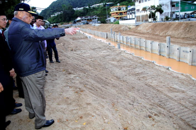 Sultan Ahmad Shah (dua, kiri), berkenan meninjau Rancangan Tebatan Banjir (RTB) di Lembah Bertam, pada Jumaat. Turut hadir Menteri Besar Pahang, Datuk Seri Adnan Yaakob. -fotoBERNAMA