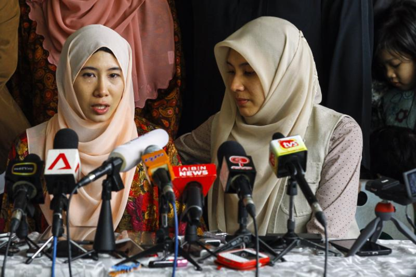 Nurul Nuha ditemani kakaknya, Nurul Izzah pada sidang media di kediaman keluarga mereka di Bukit Segambut, Rabu.