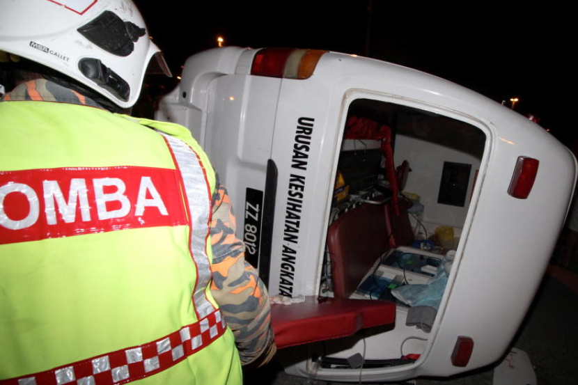 Ketua Ketenteraman Awam dan Trafik Daerah Ipoh DSP Wan Shaharuddin Wan Omar berkata dalam kejadian 7 petang itu, ambulans yang dinaiki enam penumpang bertembung dengan sebuah kereta jenis Honda Accord.